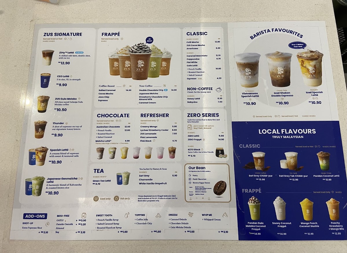 Zus Coffee Jalan Bakar Arang, Sungai Petani Menu